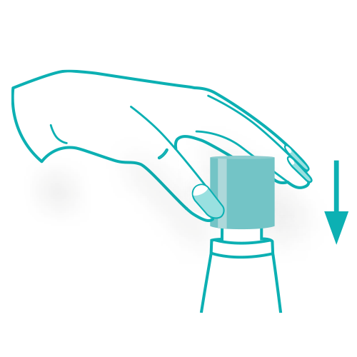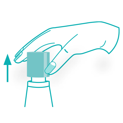 Remove the cap then release the stopper without breaking it’s tether to the bottle – you will need to replace the stopper on the